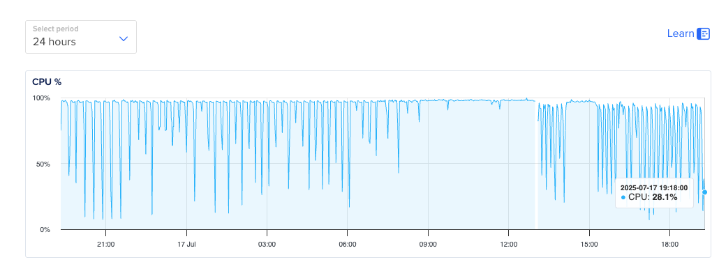 Is there more information you’re able to share? Looking at DigitalOcean pricing, going from 2CPU/4GB → 4CPU/8GB cost ~2x in monthly fees. For this, your CPU went from 100% utilized to ~20% utilized, which represents a 5x increase in capacity.